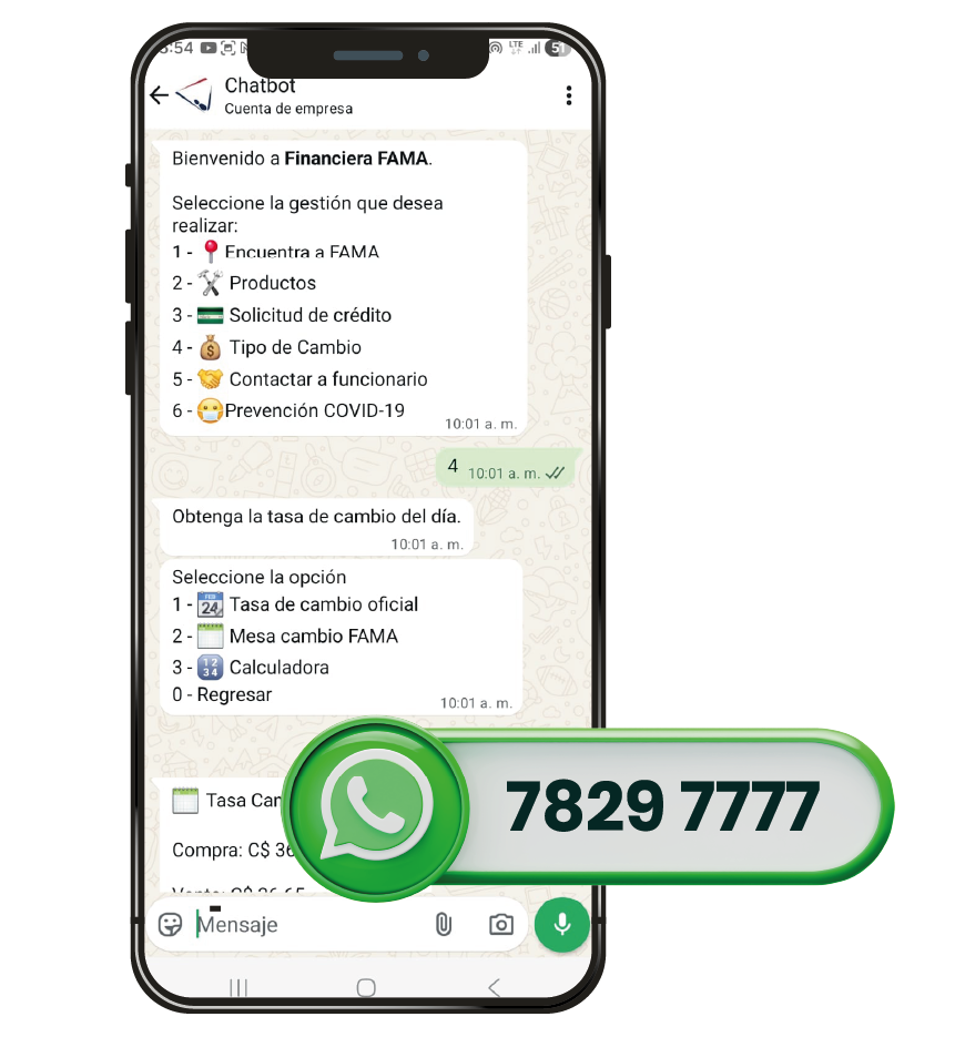 Escríbanos por WhatsApp al 7829-7777 y reciba asistencia rápida, segura y totalmente personalizada desde la comodidad de su celular. Nuestro equipo de expertos está siempre disponible para atender sus consultas sobre créditos, seguros, pagos y más, ofreciéndole la atención que usted merece y garantizando respuestas claras y confiables en cada interacción.